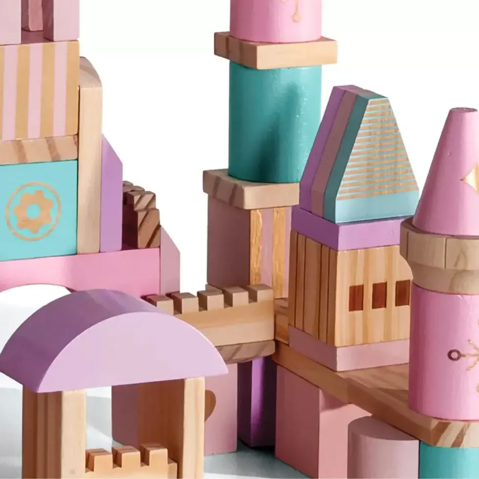 FAO Schwarz Medieval Princesses Wooden Castle Building Blocks Set - 75pc